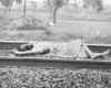 Shows 33,000 KV electrocution burn marks of contact when